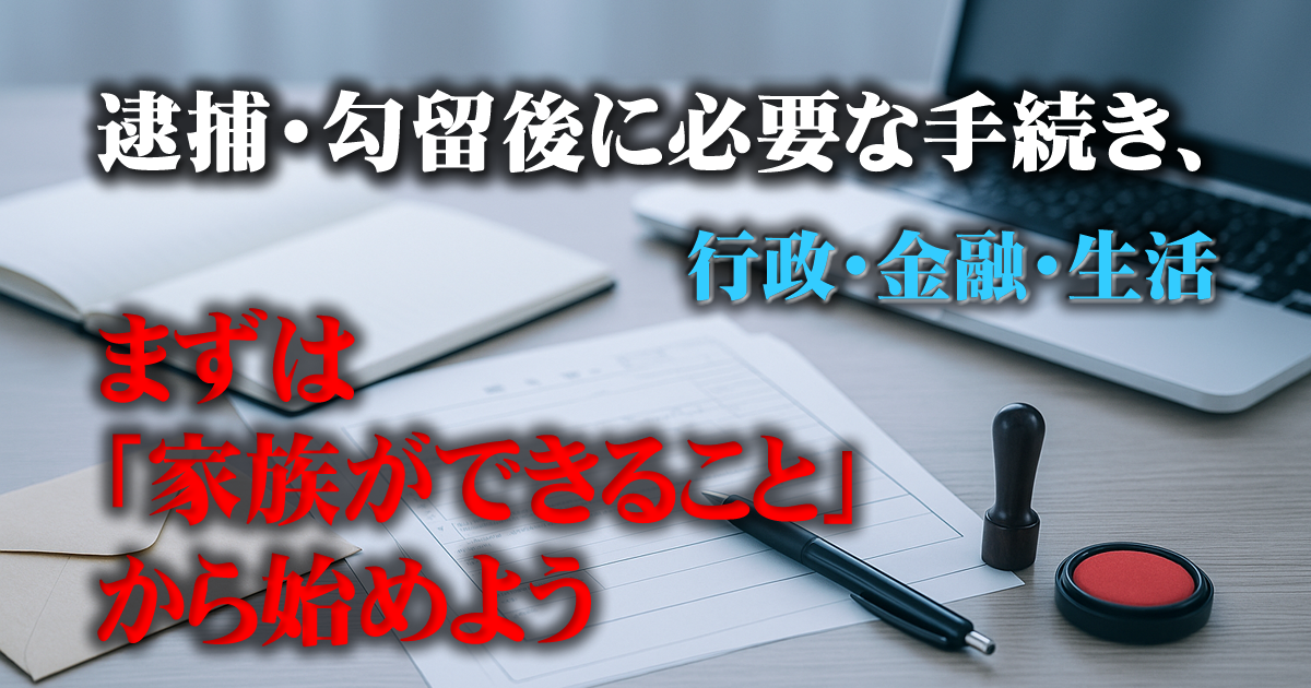 逮捕され勾留中の本人が社会生活から離れると、家族のもとにはさまざまな「現実的な手続き」が押し寄せます。